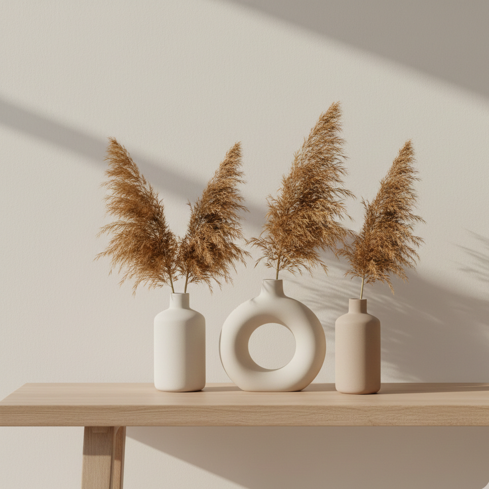 Set of 3 neutral ceramic vases designed for modern interiors.